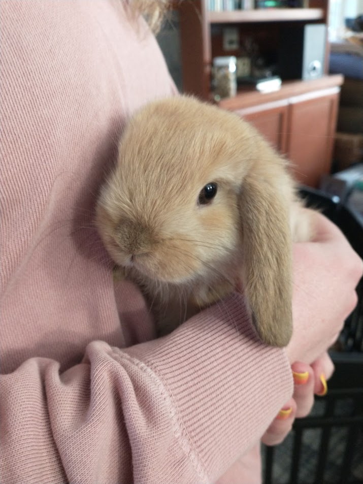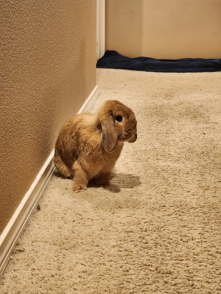 Hazel is a 1.5 year old female Holland Lop with hazel colored fur. Since she’s still a younger bunny, she has way more energy than her friend Henry. Instead of spending her days laying down and taking naps, she runs laps around the house and always finds new places to explore. She doesn’t like cuddling either, but loves to follow people around and climb on them when they lay down.