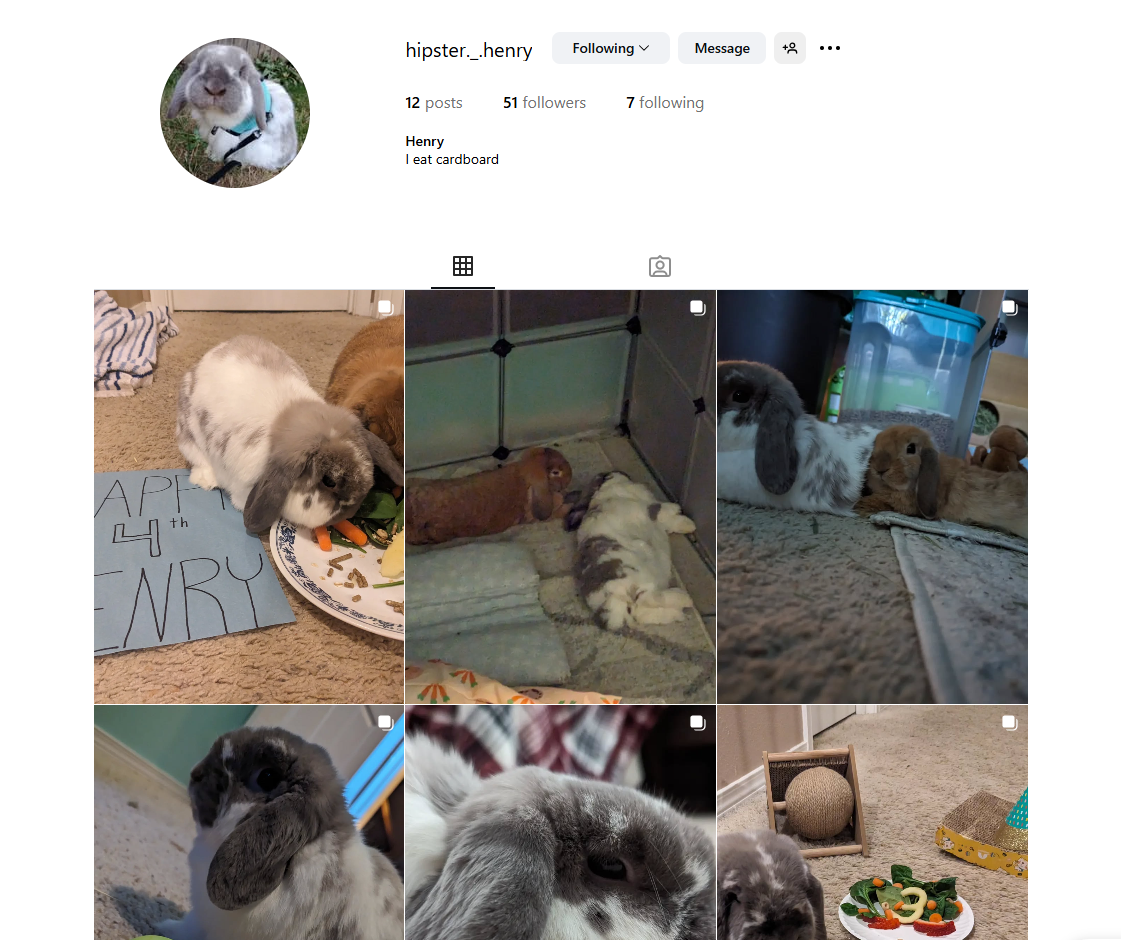 Henry and Hazel, Holland Lop bunnies, have been best friends for nearly 2 years! They love to run up and down hallways and take naps together. They have their own instagram full of pictures from all their adventures!